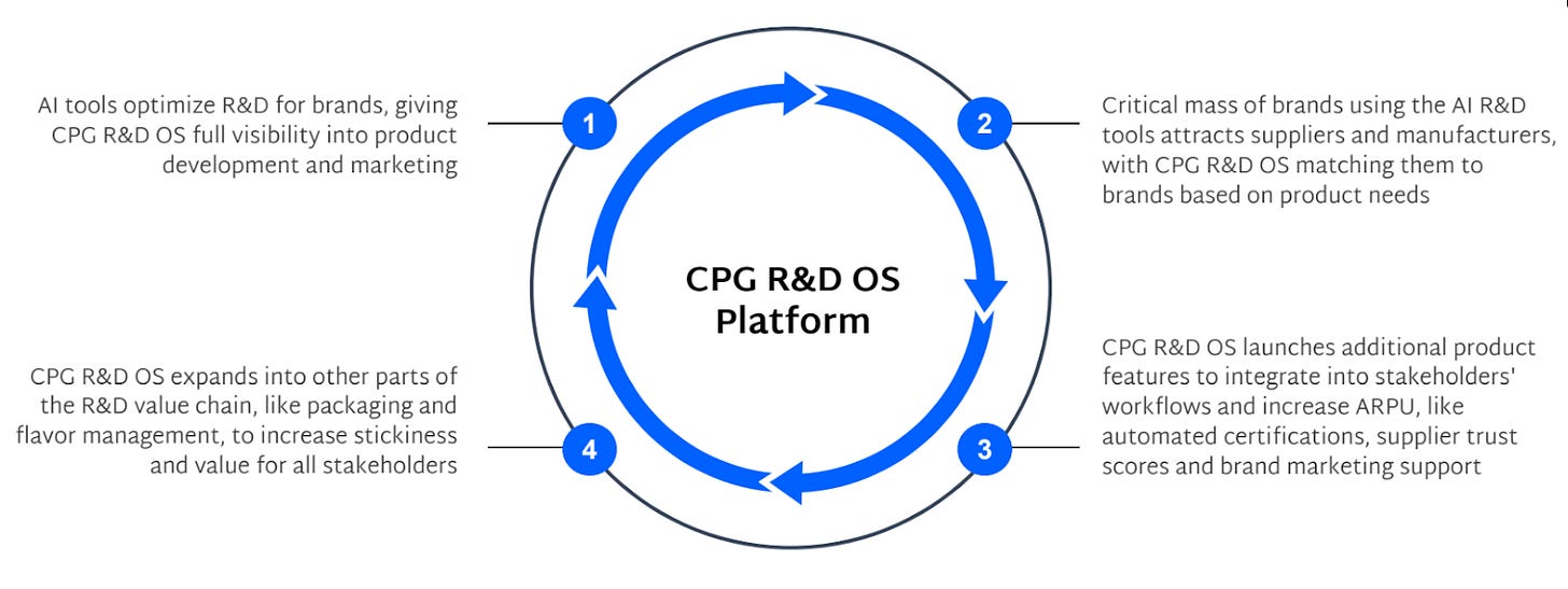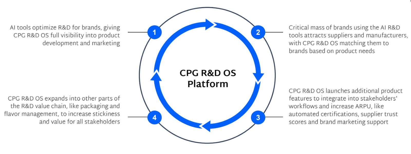 The highly fragmented, competitive nature of CPG creates a natural GTM flywheel. AI R&D tools are a compelling wedge to brands, who subsequently onboard their ingredient suppliers and manufacturers.