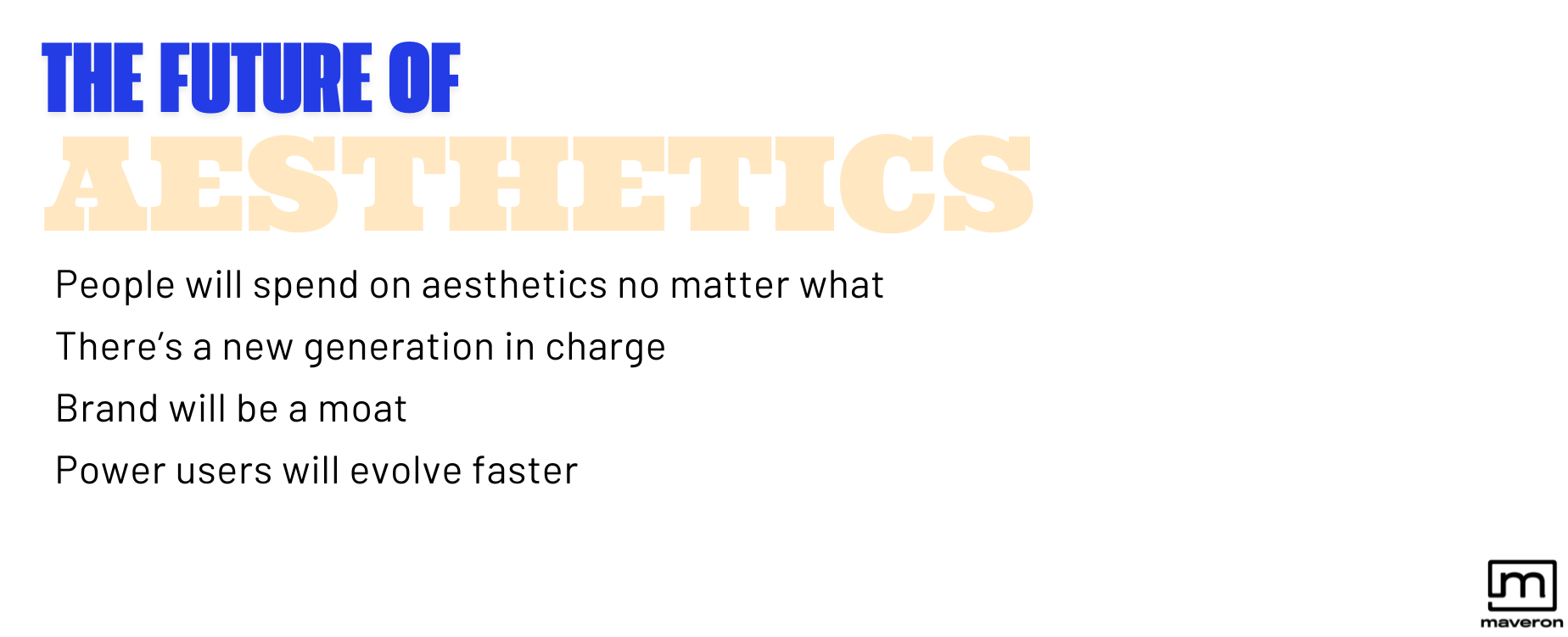There is a set of consumer beliefs and habits starting to take shape that will bring about the future of aesthetics. These are the ones taking up most of my mental real estate right now: